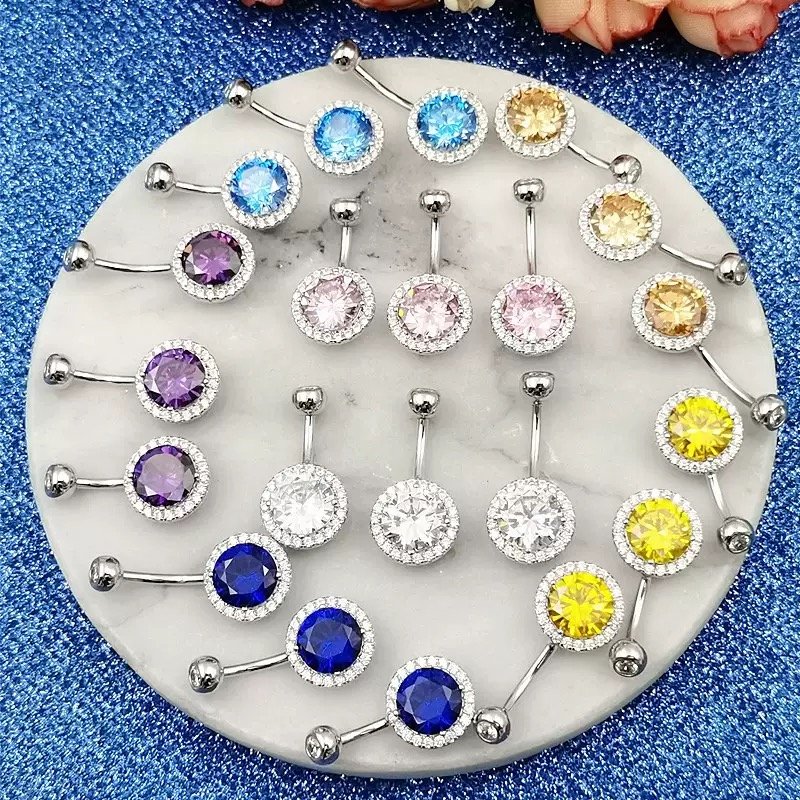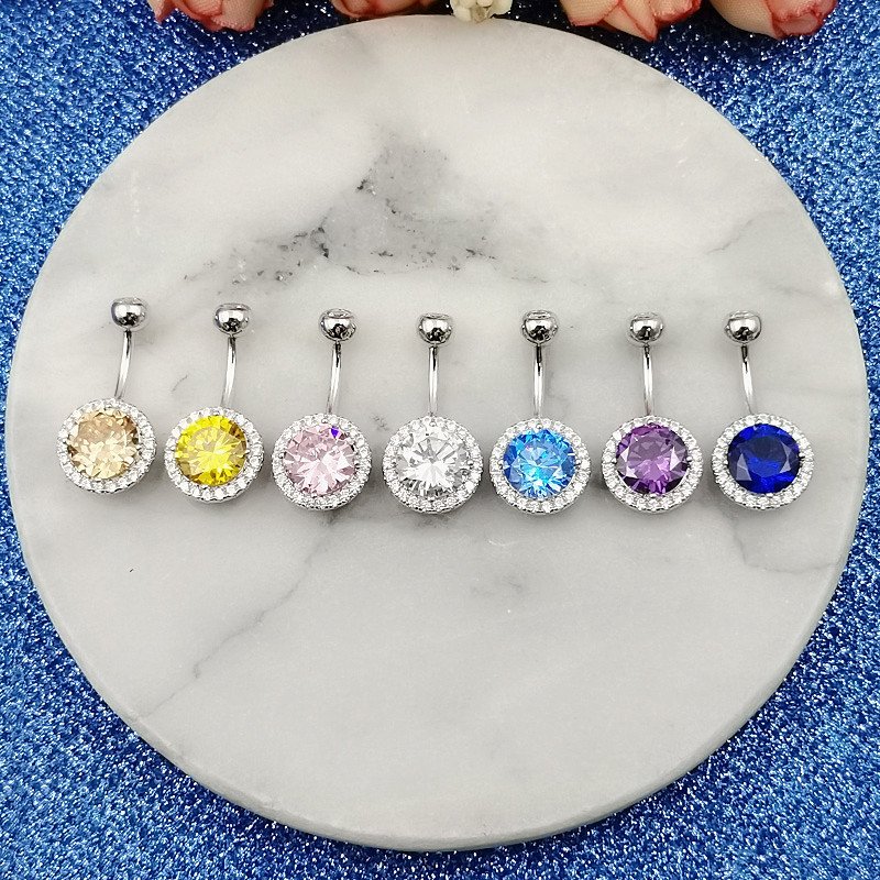 S925 Silver Zirconia Surgical Steel Colorful Belly Button