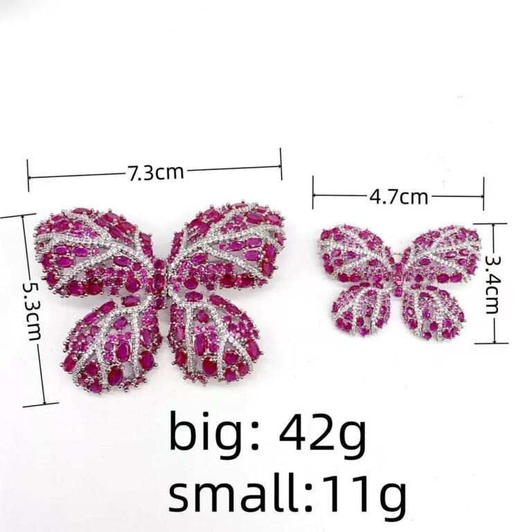 Fine Jewelry Inlaid Zircon Copper Brooch Luxury Red Butterfly Shape Corsage Pin