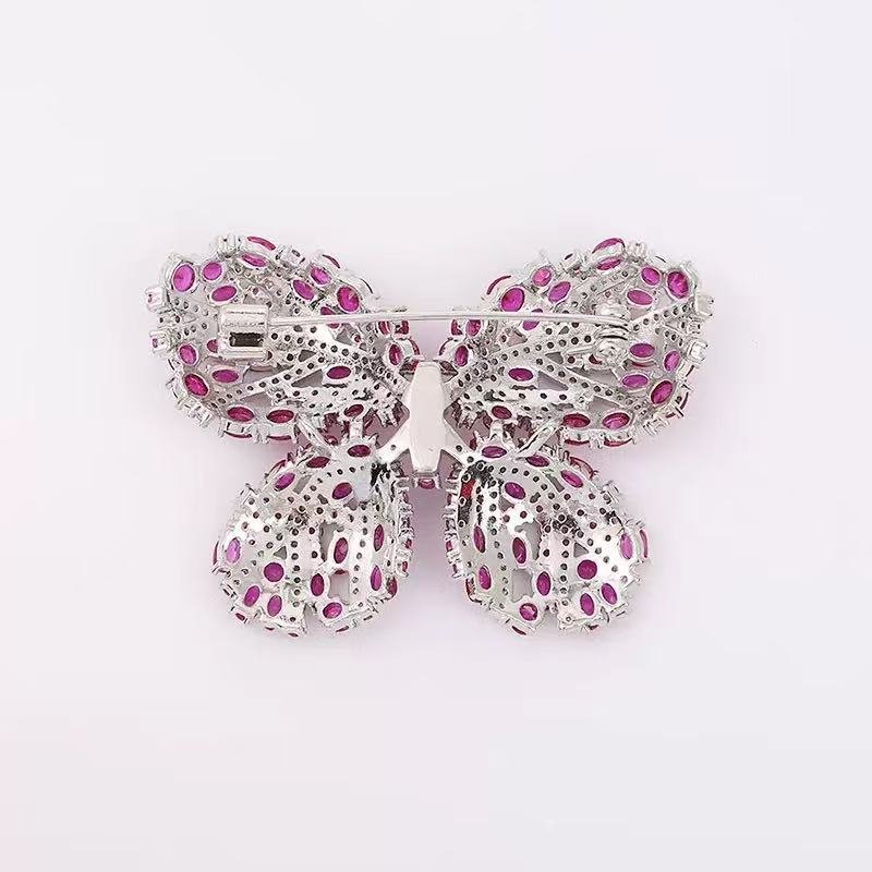 Fine Jewelry Inlaid Zircon Copper Brooch Luxury Red Butterfly Shape Corsage Pin