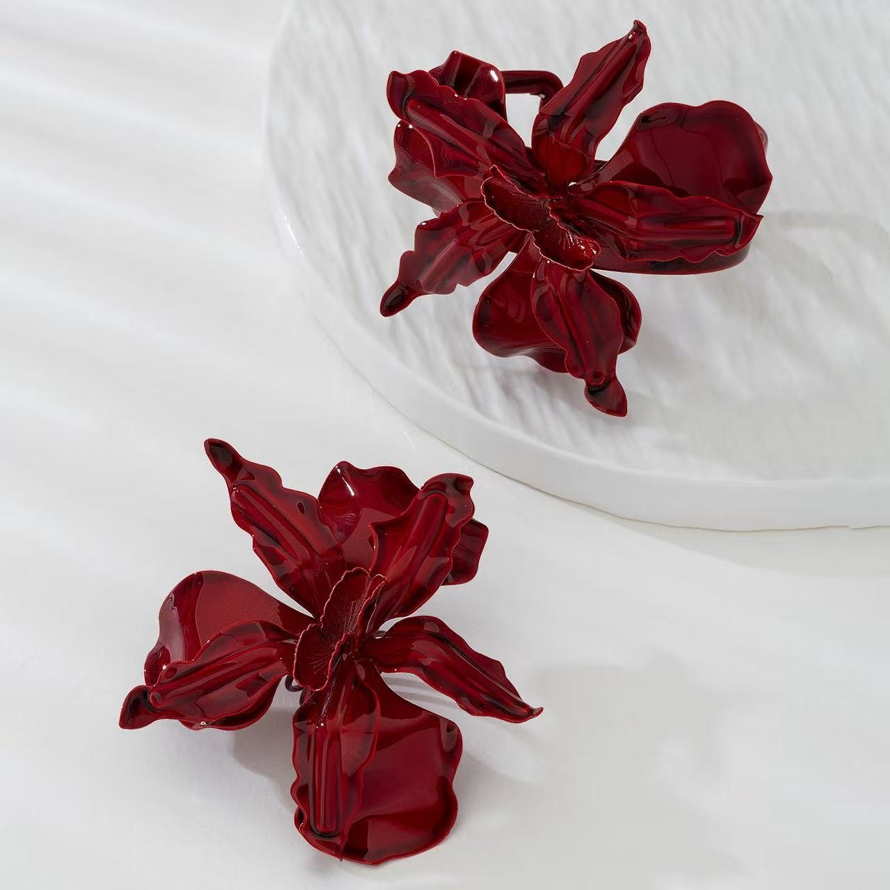 Exaggerated and High-end Red Large Flower Bracelet Ring Set Women’s Party Gift
