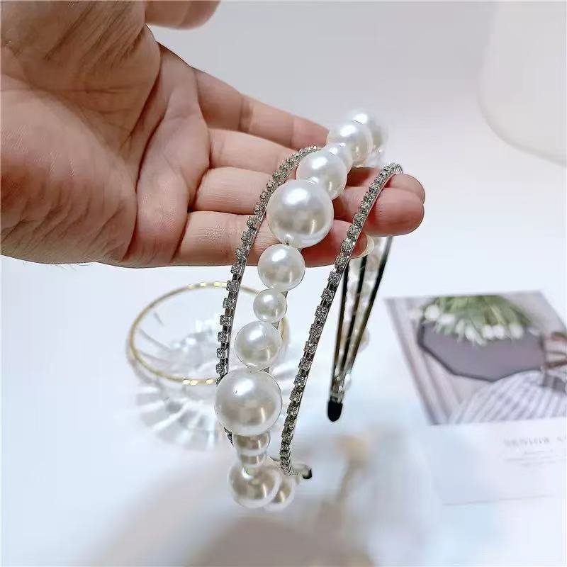 Alloy and Imitation Pearl Flower Shape Thin Delicate Hair Band for Women