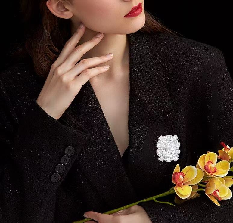 High-end Silk Diamond Plated Camellia Shape Customization Brooch or Hairpin