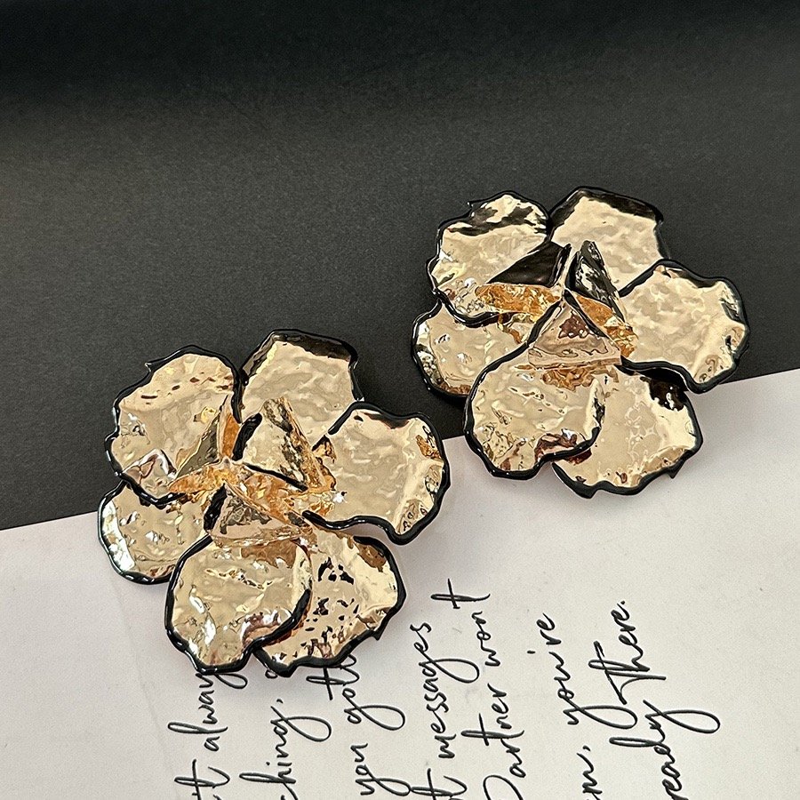 Luxury Metallic Enamel Women Ear Jewelry Metal Flower Stud Earrings